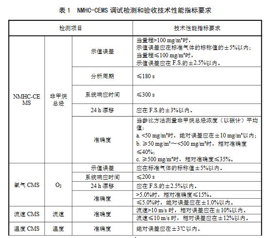 a)NMHC-CEMS分析周期;b)NMHC-CEMS系統響應時間;c)NMHC-CEMS零點漂移、量程漂移;4d)NMHC-CEMS示值誤差;e)NMHC-CEMS準確度;f)流速CMS準確度;g)流速CMS速度場系數;h)流速CMS速度場系數精密度;i)溫度CMS準確度;j)濕度CMS準確度。